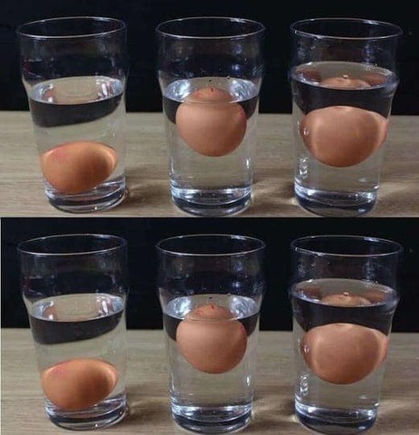 Por qué funciona: Los huevos más viejos tienen celdas de aire más grandes: ¡flotan!