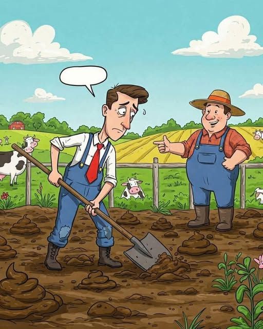 Buscando algo para entretenerse, le pidió una tarea al granjero. El granjero, esperando que el hombre de ciudad tuviera dificultades, le encargó una tarea complicada: limpiar todo el estiércol de vaca del establo. Para su sorpresa, el gerente completó la tarea en menos de un día.