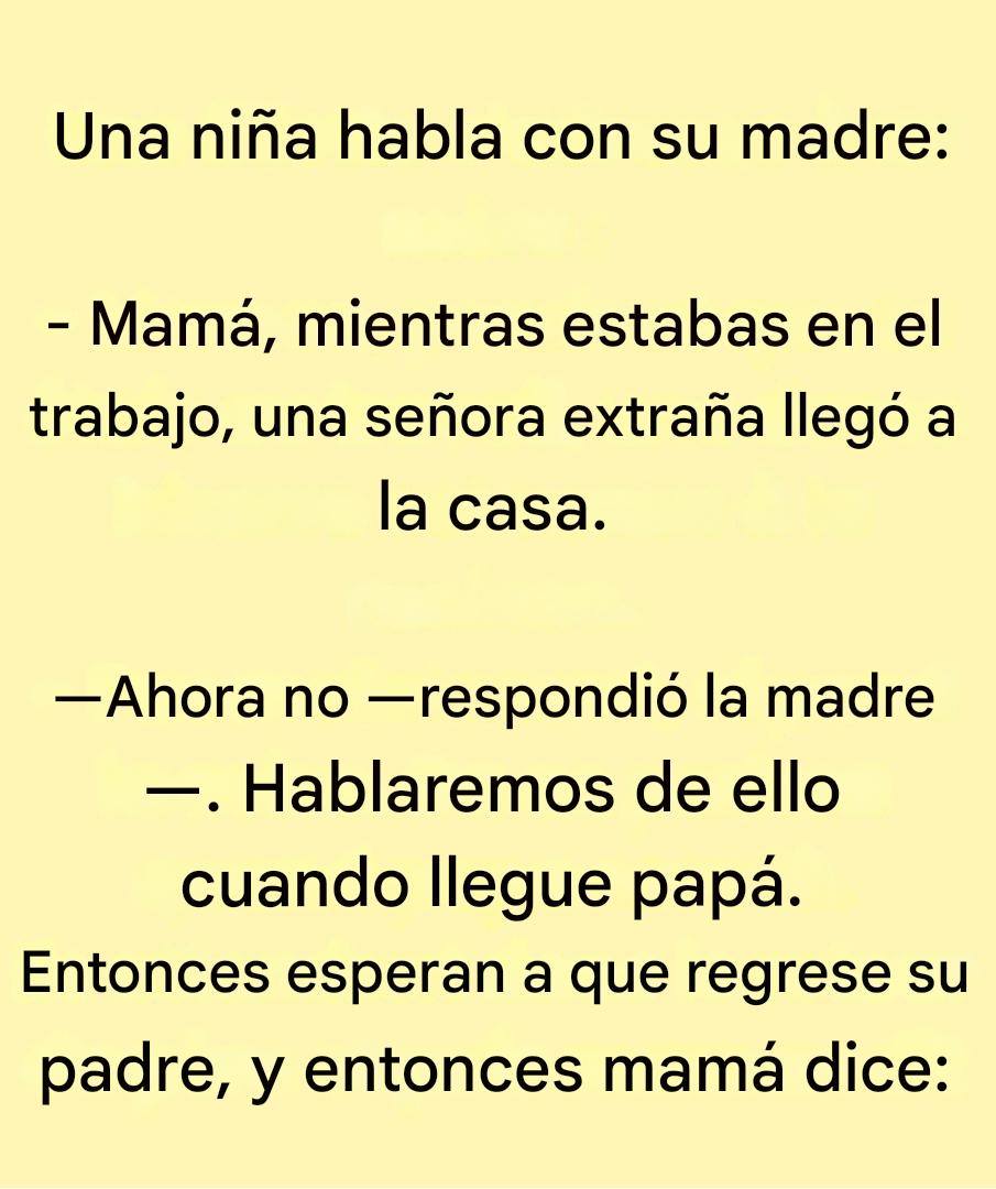 Continúa en la página siguiente. El caos llega a su punto álgido cuando mamá, presa de la ira y el pánico, grita: “¡Ya basta por esta noche! ¡A dormir!”. La niña, mientras tanto, corre a su habitación, encantada de haber revelado algunos “secretos” familiares.