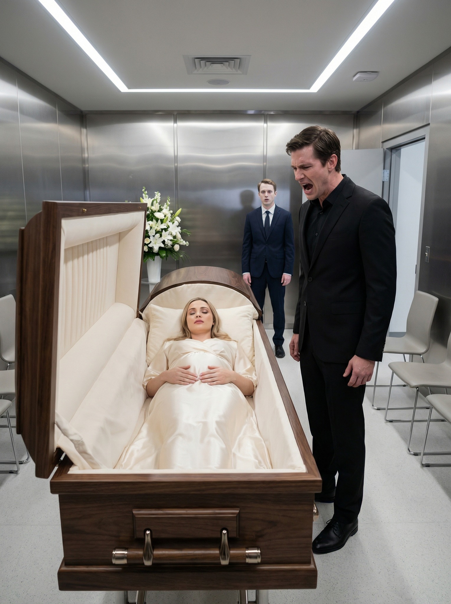 Su esposa, Lillian Halbrook, yacía dentro, con los rasgos suavizados por una cuidadosa preparación, su cabello rubio peinado como siempre lo llevaba cuando quería sentirse serena, a pesar de que el mundo le había fallado de la forma más implacable imaginable. Llevaba siete meses de embarazo, radiante solo unas semanas antes, riendo al ver cómo reaccionaba el bebé a la música mientras Andrew le pegaba la oreja al vientre por las noches.