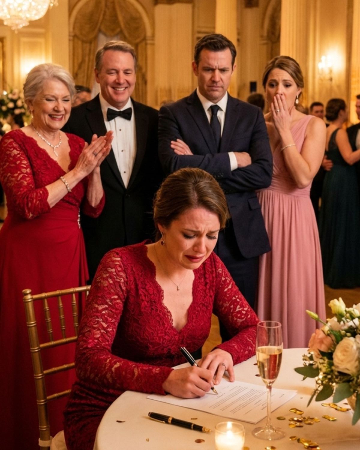 El abogado de la familia, el señor Caldwell, se aclaró la garganta y acercó con suavidad el acuerdo de divorcio hacia ella.