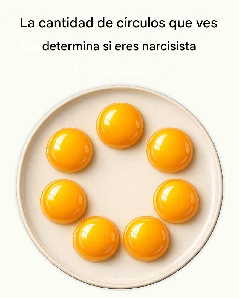 A primera vista, la imagen parece inofensiva: un plato limpio, siete yemas de huevo brillantes dispuestas en un anillo casi perfecto y un titular atrevido que afirma que la cantidad de círculos que ves puede determinar si eres narcisista.