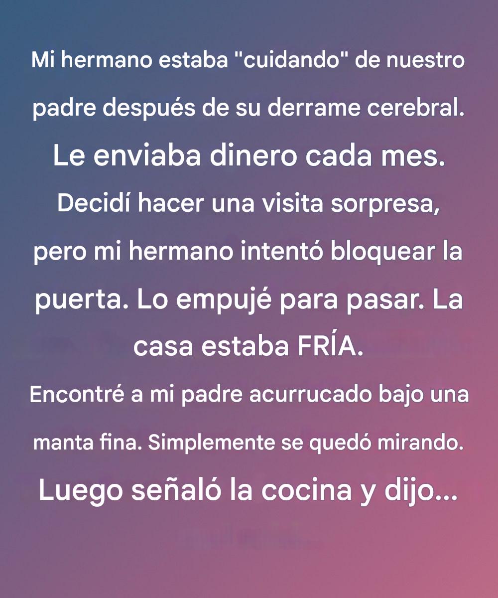 No solo frío, sino un frío penetrante, profundo. De esos que te hacen escocer los pulmones al respirar. Mi padre estaba acurrucado en el sofá, envuelto en una manta fina que parecía húmeda. No estaba viendo la tele. No estaba durmiendo.