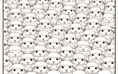 A primera vista, la imagen parece simple: un campo lleno de adorables ovejas de dibujos animados. Pero escondidas entre las…