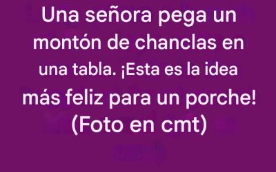 Una señora pega un montón de chanclas en una tabla. ¡Esta es la idea más feliz para el porche!