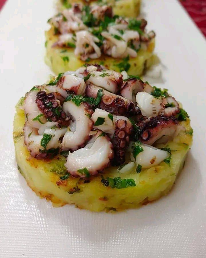 Si buscas un plato que combine sabor, sencillez y sofisticación, el pastel de papa con pulpo es la solución perfecta. El dulzor de las papas se combina con el intenso sabor del pulpo, ablandado por una cocción cuidadosa. Ideal como un rico aperitivo, un elegante plato principal o un plato ligero, deleitará incluso a los paladares más exigentes, y su presentación dorada lo convierte en el centro de atención de la mesa.Ingredientes (para 4 personas)