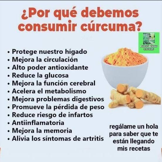 La cúrcuma contiene curcumina, un compuesto con propiedades antioxidantes y antiinflamatorias.